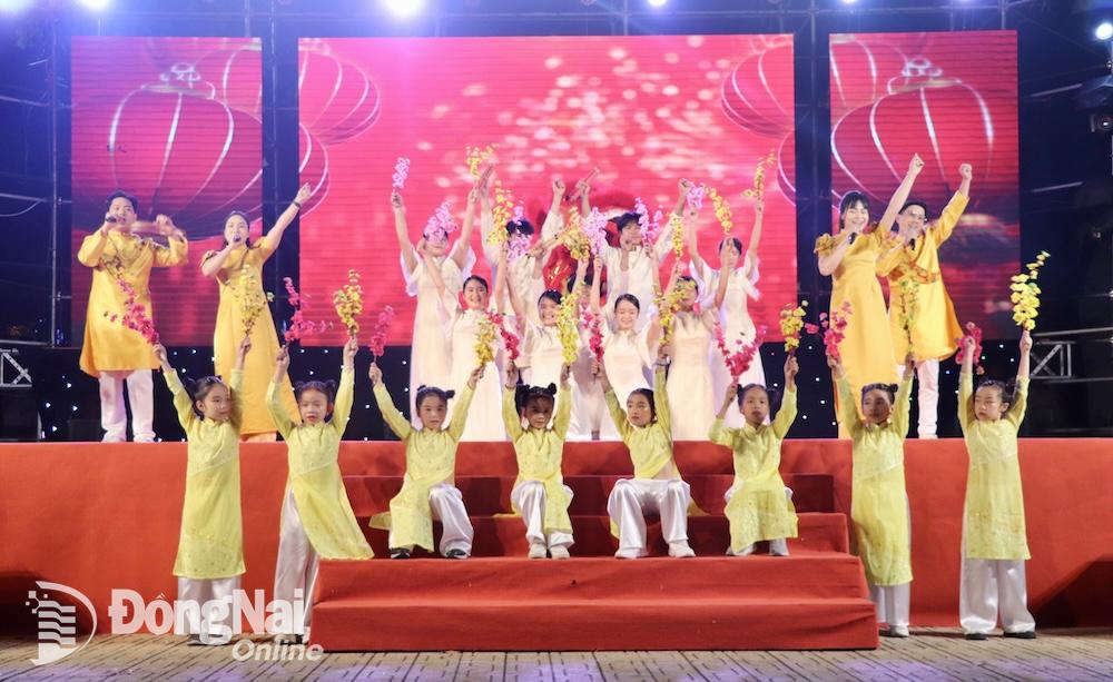 | Một tiết mục văn nghệ chào xuân được biểu diễn trong lễ khai mạc. Ảnh: Hải Yến |