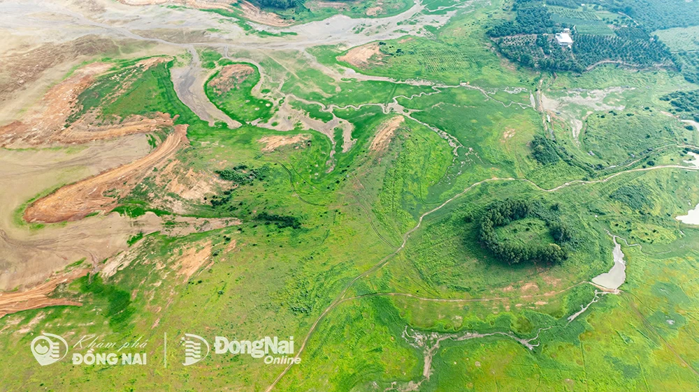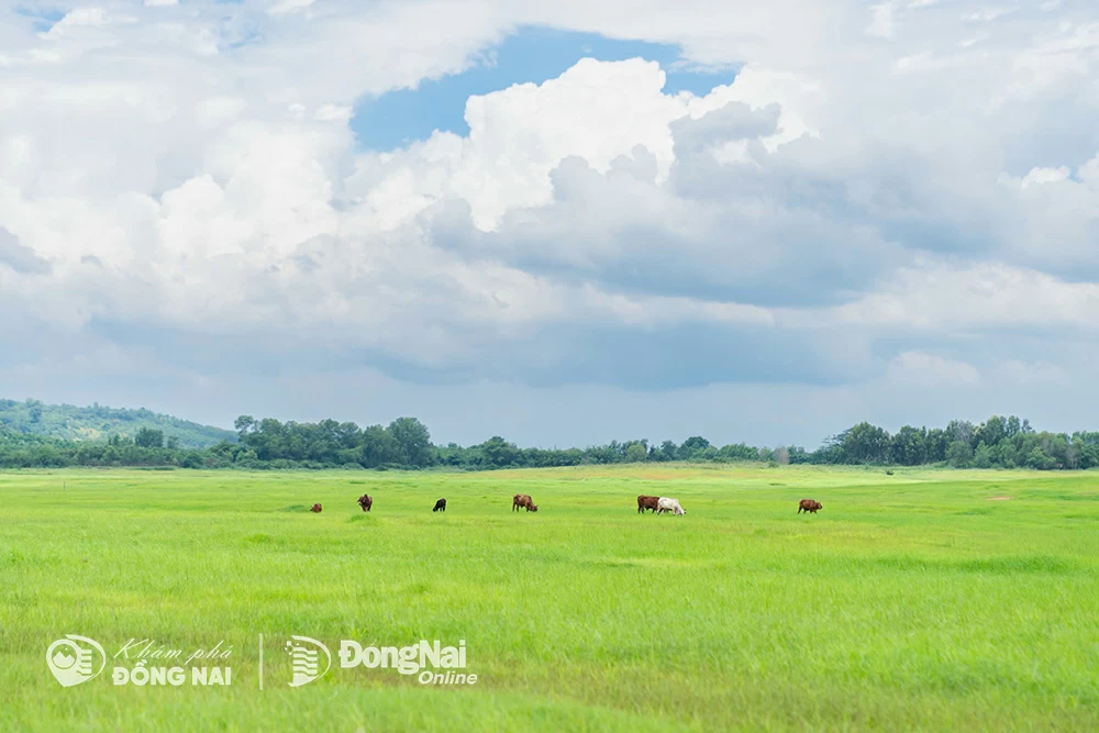 Du khách sẽ được tận mắt ngắm nhìn sự biến đổi diệu kỳ của hồ Trị An vào thời điểm này. Mặt hồ giờ đây nhường chỗ cho những thảm cỏ non xanh mướt, trải dài ngút tầm mắt đến tận chân trời.