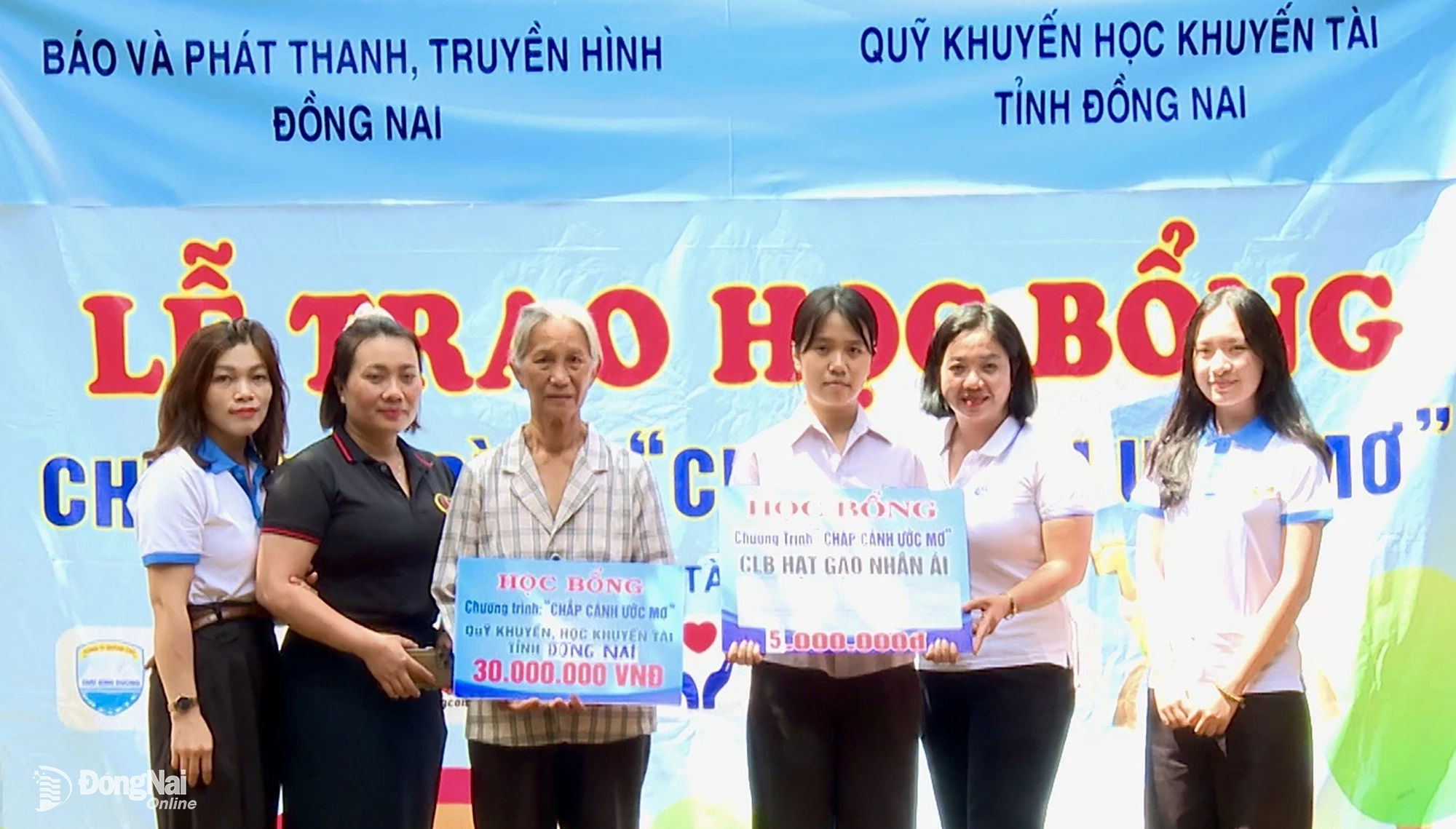 (ĐN) - “Nếu chương trình Chắp cánh ước mơ của Báo và phát thanh, truyền hình Đồng Nai không đến thì cánh cửa đại học của em sẽ khép lại, tương lai của em chỉ là con số 0 tròn trĩnh. Em biết ơn những tấm lòng nhân ái đã trao tặng cho em số tiền quá lớn, ngay cả trong mơ em cũng không dám nghĩ... Em hứa sẽ học thật tốt, để sau này quay lại giúp đỡ những bạn giống như em bây giờ” - em Lê Khả Doanh ở tổ 2, ấp Thanh Xuân, phường An Lộc, xúc động chia sẻ tại buổi lễ trao học bổng Chắp cánh ước mơ (kỳ 120), diễn ra ngày 17-7.