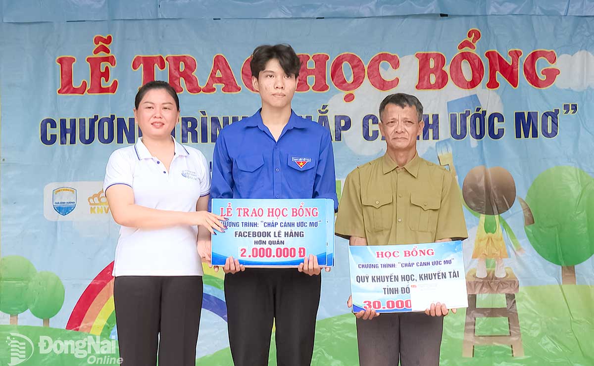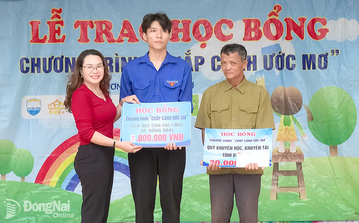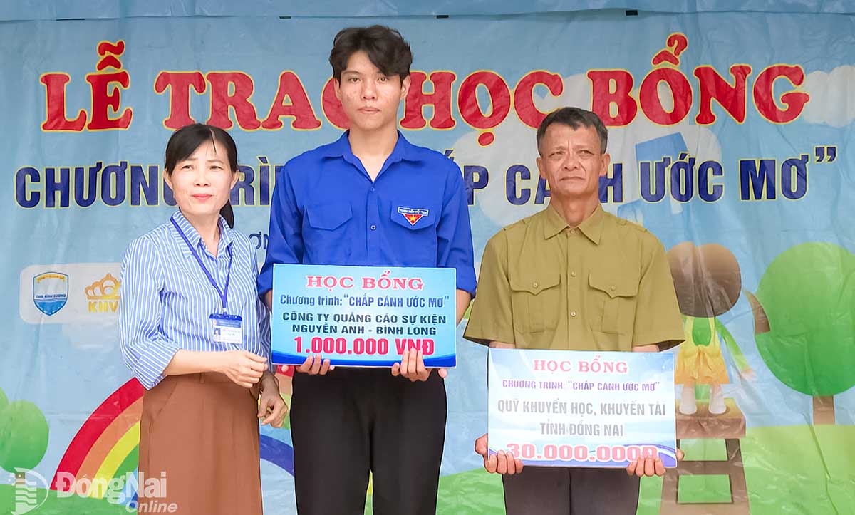 (ĐN) - Đó là số tiền mà em Đỗ Quang Biên, học sinh lớp 12A5, Trường THPT Lộc Ninh (tỉnh Đồng Nai) vừa đón nhận tại buổi lễ trao học bổng "Chắp cánh ước mơ" (lần thứ 122). Chương trình do Báo và Phát thanh, Truyền hình Đồng Nai phối hợp Quỹ Khuyến học tỉnh tổ chức ngày 19-9.
