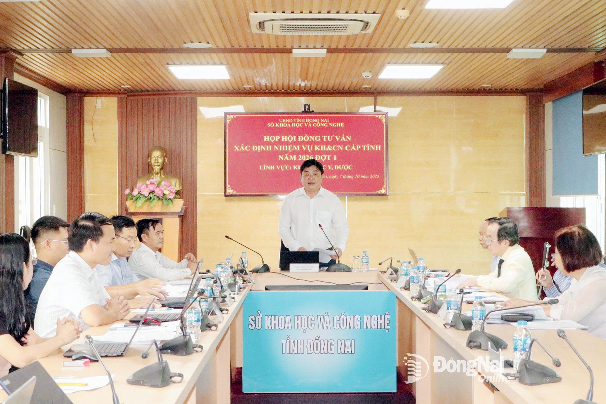 (ĐN) - Chiều 7-10, Sở Khoa học và Công nghệ tỉnh Đồng Nai tổ chức Hội đồng Khoa học tư vấn xác định danh mục nhiệm vụ khoa học và công nghệ cấp tỉnh năm 2026 (đợt 1) trong lĩnh vực khoa học y dược. Tỉnh ủy viên, Giám đốc Sở Khoa học và Công nghệ tỉnh Phạm Văn Trinh, Chủ tịch Hội đồng chủ trì buổi làm việc.