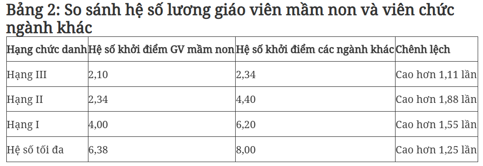 Riêng giáo viên mầm non là nhóm chịu bất lợi lớn nhất trong toàn hệ thống khi tất cả đều đang đứng ở mức thấp nhất của thang bậc lương hành chính sự nghiệp: