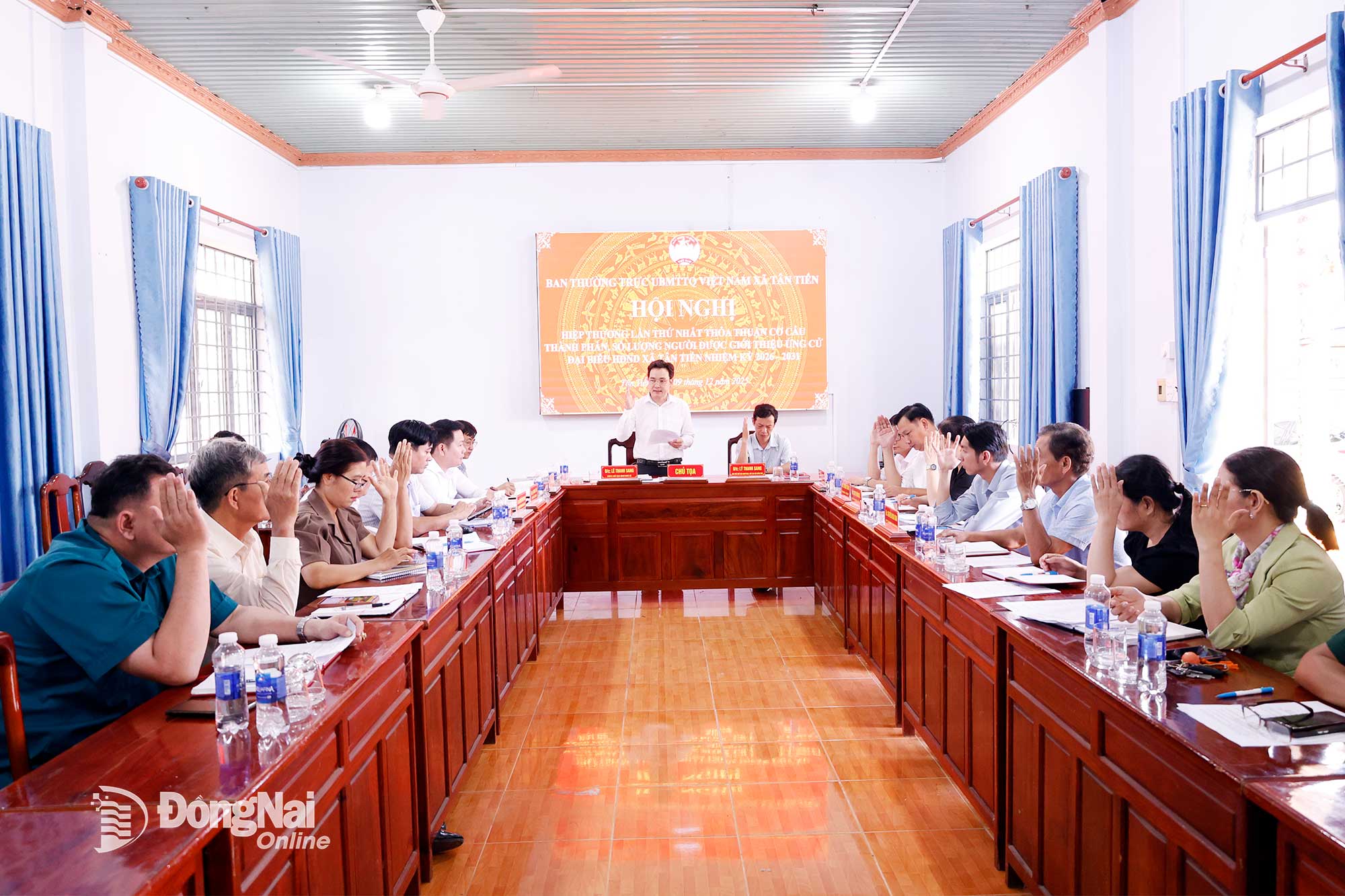 | Các đại biểu biểu quyết thống nhất dự kiến cơ cấu, thành phần và số người được giới thiệu ứng cử đại biểu HĐND xã Định Quán nhiệm kỳ 2026-2031. Ảnh: Đan Nhi |