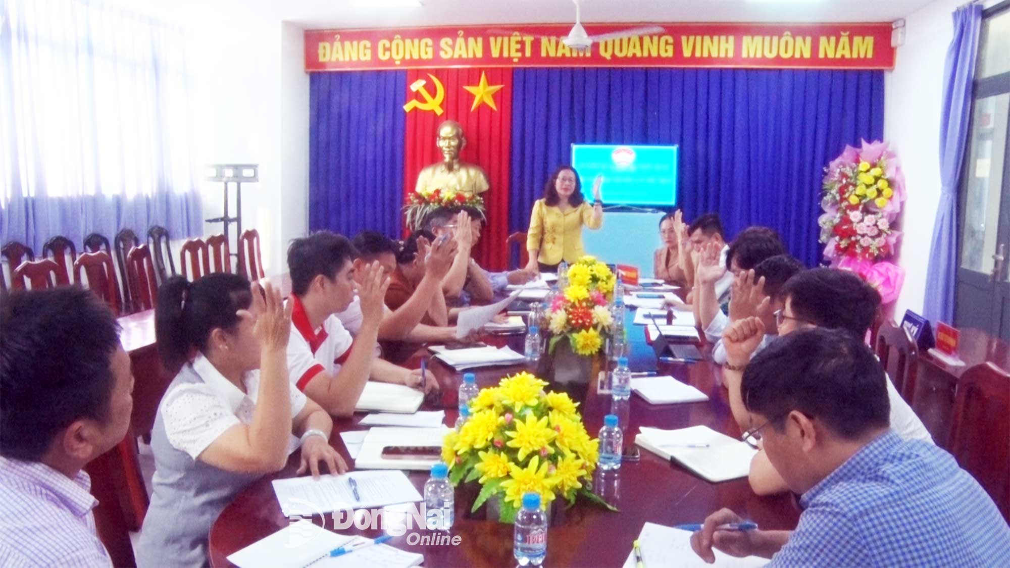 | Các đại biểu biểu quyết thông qua các nội dung tại hội nghị. Ảnh: Văn Tâm |