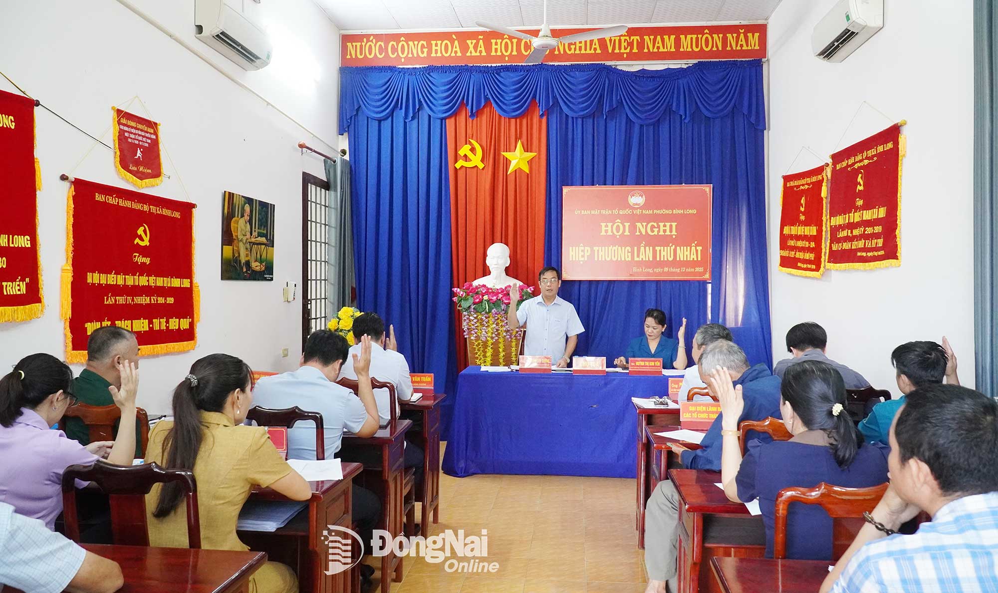 *Sáng 9-12, Ủy ban MTTQ Việt Nam phường Bình Long tổ chức Hội nghị hiệp thương lần thứ I để thảo luận thông qua về dự kiến cơ cấu, thành phần và phân bổ số lượng người được giới thiệu ứng cử đại biểu HĐND phường Bình Long, nhiệm kỳ 2026-2031.