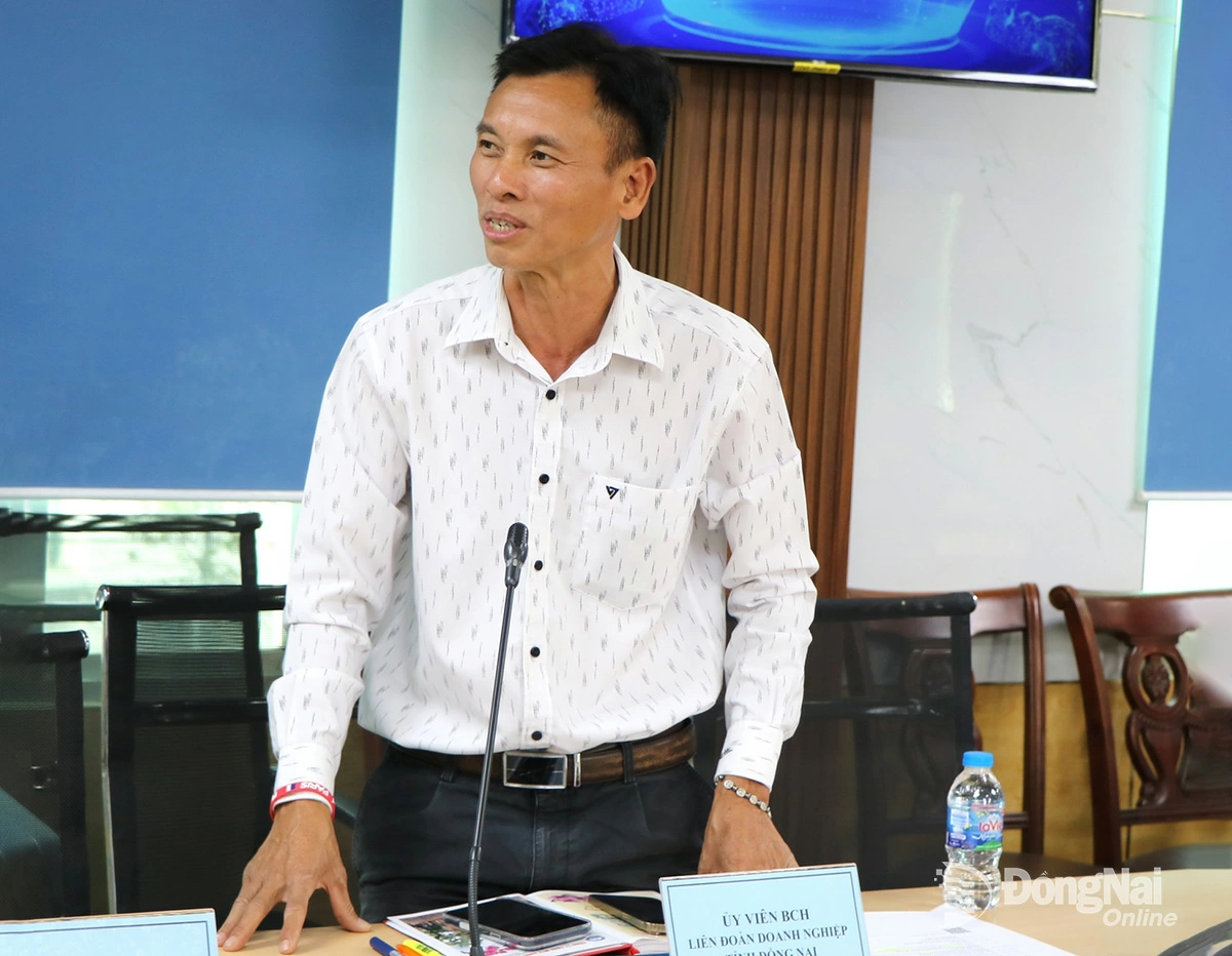 | Đại diện Liên đoàn Doanh nghiệp Đồng Nai nêu những khó khăn của cộng đồng doanh nghiệp. Ảnh: Vương Thế |