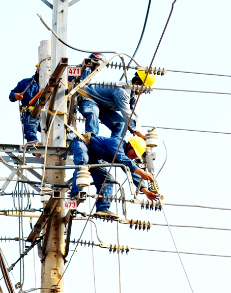 | Sửa chữa, duy tu lưới điện thường xuyên giúp giảm tổn thất điện năng. Trong ảnh: Sửa chữa điện tại huyện Nhơn trạch. |
