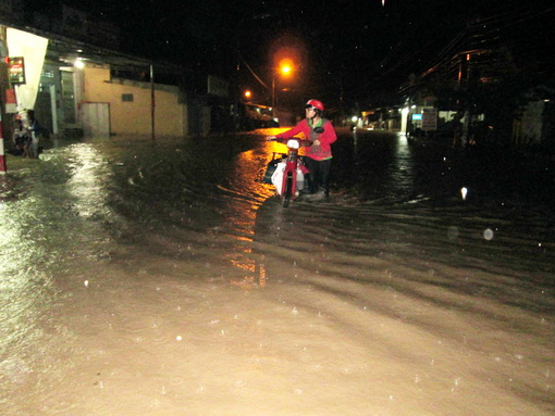 Trận mưa lớn kéo dài hơn 1 giờ đồng hồ vào chiều tối ngày 3-7 đã làm nhiều nơi trên địa bàn huyện Long Thành bị ngập lụt nặng...
