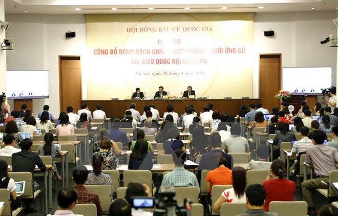 Chiều 26/4, Hội đồng Bầu cử quốc gia tổ chức họp báo công bố danh sách 870 người chính thức ứng cử đại biểu Quốc hội khóa XIV ở 184 đơn vị bầu cử trong cả nước để bầu 500 đại biểu Quốc hội khóa XIV.