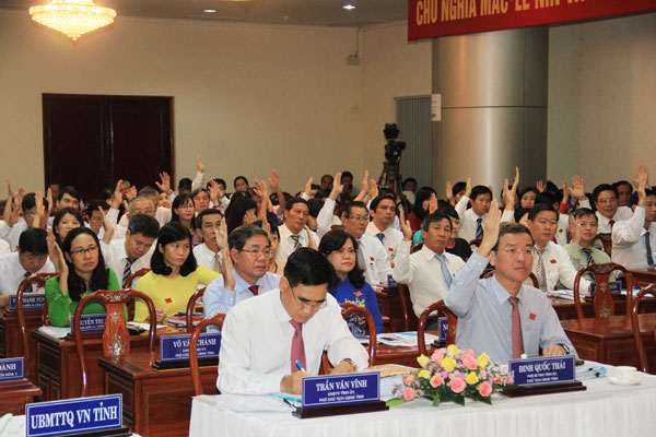 | Các đại biểu HĐND tỉnh biểu quyết thông qua các nghị quyết tại kỳ họp |