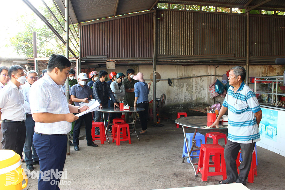 | Đại diện UBND H.Long Thành đọc quyết định cưỡng chế khu đất hộ ông V.Q.P. lấn chiếm |