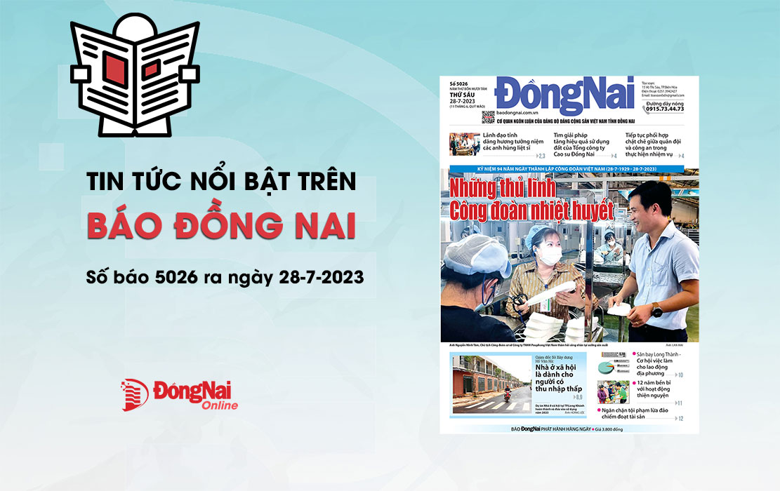 Những thủ lĩnh Công đoàn nhiệt huyết; Giám đốc Sở Xây dựng Hồ Văn Hà: Nhà ở xã hội là dành cho người có thu nhập thấp; Sân bay Long Thành - Cơ hội việc làm cho lao động địa phương; 12 năm bền bỉ với hoạt động thiện nguyện; Ngăn chặn tội phạm lừa đảo chiếm đoạt tài sản;… là những nội dung nổi bật trên Báo Đồng Nai số 5026 ra ngày 28-7-2023.