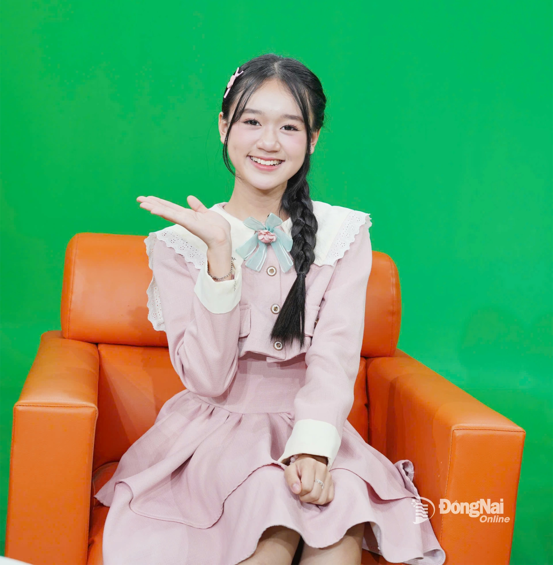 | Thảo Nhi lưu lại khoảnh khắc đáng nhớ tại Báo và Phát thanh, Truyền hình Đồng Nai. Ảnh: Xuân Phú |