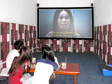 Khác với những địa điểm chiếu phim phục vụ khách trong rạp, phòng chiếu phim mini là một không gian xem phim riêng biệt phục vụ nhu cầu cho từng nhóm đối tượng khán giả (phòng chiếu phục vụ từ 2-30 khách). Với diện tích mỗi phòng chiếu khoảng 20 m2, được trang trí đơn giản với bàn và những chiếc ghế bệt rộng rãi, khán giả có thể thoải mái lựa chọn những bộ phim mà mình yêu thích. “Ở mỗi phòng chiếu chúng tôi luôn có hàng ngàn đầu phim để khán giả lựa chọn” - quản lý quán Café HD trên đường Nguyễn Ái Quốc, cho biết.