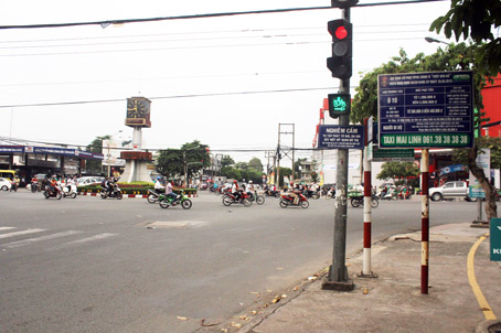 | Một trụ đèn tín hiệu giao thông khá thoáng đãng, sạch sẽ tại ngã tư Tân Phong. |