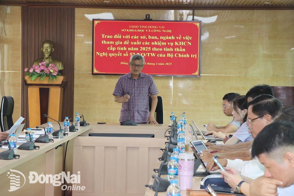 (ĐN) - Sáng 15-4, Sở Khoa học và công nghệ (KHCN) đã tổ chức cuộc họp trao đổi với các sở, ban, ngành về việc tham gia đề xuất các nhiệm vụ KHCN cấp tỉnh năm 2025 theo tinh thần Nghị quyết số 57-NQ/TW của Bộ Chính trị về đột phá phát triển khoa học, công nghệ, đổi mới sáng tạo và chuyển đổi số quốc gia (Nghị quyết 57).
