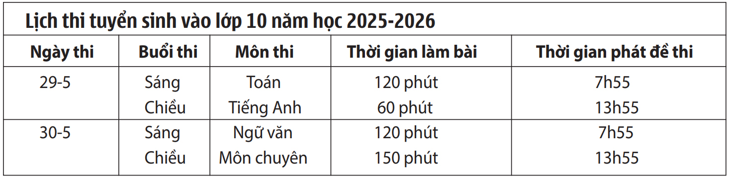 Kỳ thi tuyển sinh vào lớp 10 trung học phổ thông (THPT) năm học 2025-2026 sẽ diễn ra trong 2 ngày 29 và 30-5, với 21,4 ngàn thí sinh đăng ký dự thi. Dù kỳ thi diễn ra sớm hơn so với các năm trước song Sở Giáo dục và đào tạo (GDĐT) đã có những bước chuẩn bị chu đáo nhằm tạo thuận lợi cho thí sinh bước vào kỳ thi.