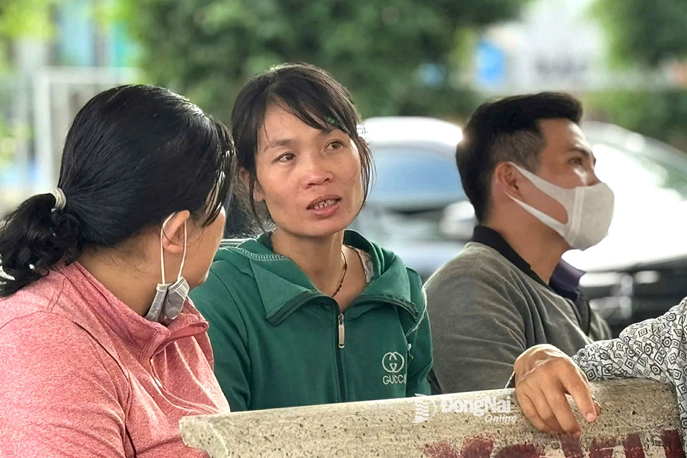 | Chị Vân (áo xanh) thất thần tại Bệnh viện Đa khoa Thống Nhất. Ảnh: Bích Nhàn |