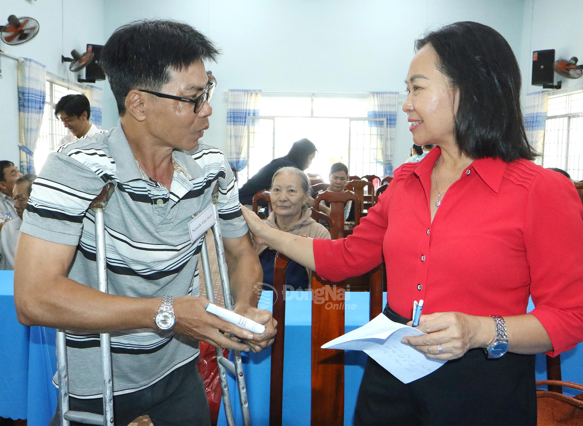 | Phó Chủ tịch Hội Nạn nhân chất độc da cam/dioxin tỉnh Đồng Nai Nguyễn Thị Thuận trao học bổng và vốn cho người khuyết tật, nạn nhân chất độc da cam. Ảnh: Văn Truyên |