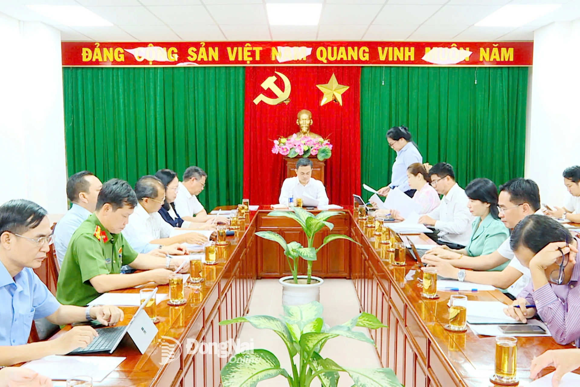 | Ủy viên Ban Thường vụ Tỉnh ủy, Phó Chủ tịch UBND tỉnh Đồng Nai Lê Trường Sơn làm việc với Ban Chỉ đạo liên ngành về an toàn thực phẩm. Ảnh: Quang Phát |