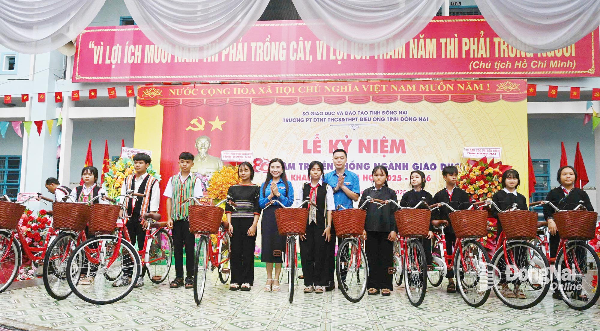 Tại lễ khai giảng, thay mặt Tỉnh ủy - HĐND - UBND - Ủy ban MTTQ Việt Nam tỉnh Đồng Nai, Ủy viên dự khuyết Trung ương Đảng, Phó Bí thư Thường trực Tỉnh ủy, Chủ tịch HĐND tỉnh Tôn Ngọc Hạnh trao tặng trường 50 suất học bổng (trị giá 50 triệu đồng), 50 phần quà cho học sinh có hoàn cảnh đặc biệt khó khăn, tặng 300 bộ sắc phục dân tộc cho học sinh nhà trường.