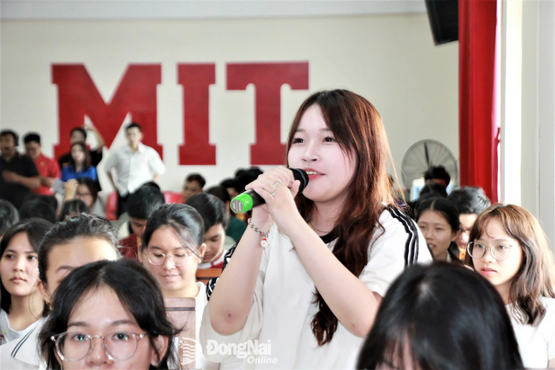 | Sinh viên Trường đại học Công nghệ Miền Đông tham gia tương tác với báo cáo viên tại trại nghiên cứu khoa học. Ảnh: Nga Sơn |