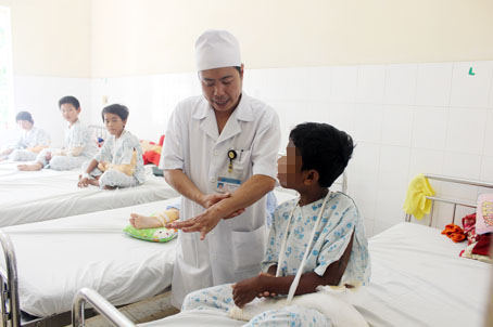 Cũng chiếm số lượng đông đúc tại Khoa Ngoại chấn thương - chỉnh hình, bỏng Bệnh viện nhi đồng Đồng Nai là những ca bỏng do điện, nước sôi… Hầu hết các ca bỏng của trẻ đều do người lớn bất cẩn.