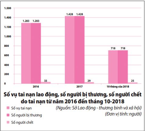 Theo Sở Lao động - thương binh và xã hội, mặc dù từ năm 2016 đến nay số vụ tai nạn lao động cũng như số người chết và bị thương do tai nạn lao động ngày càng được kéo giảm song vẫn còn cao. Chỉ từ đầu năm 2018 đến nay toàn tỉnh ghi nhận 718 vụ tai nạn lao động, trong đó 24 vụ tai nạn lao động làm chết 25 người.