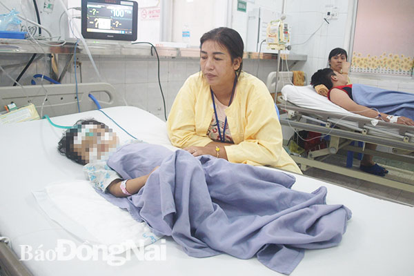 | Người thân chăm sóc trẻ bị viêm não do virus EV71 tại Bệnh viện nhi đồng Đồng Nai. Ảnh:K.Ngọc |