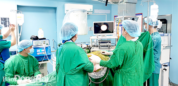 Bệnh nhân là anh L.Đ.B. (42 tuổi, TP.Biên Hòa). Anh B. là người có cơ địa dễ mắc bệnh sỏi với tiền sử 5 lần mổ tán sỏi thận/sỏi niệu quản trong vòng hơn 10 năm nay. Ngày 11-6, bệnh nhân nhập viện trong tình trạng đau ở vùng hông lưng hai bên. Qua thăm khám lâm sàng, chụp phim bụng, siêu âm, chụp MSCT bụng - tiểu khung, các bác sĩ xác định bệnh nhân có sỏi ở thận phải gây ứ nước độ 3 và sỏi niệu quản trái gây ứ nước độ 2, nguy cơ suy thận cấp rất cao nếu không được điều trị ngay. Bệnh nhân được bác sĩ cho nhập viện để tiến hành phẫu thuật.
