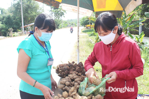 Những ngày này, dọc tỉnh lộ 768 (đoạn qua ấp 1 và ấp 2, xã Trị An, H.Vĩnh Cửu) xuất hiện nhiều chòi tạm bợ bày bán các nông sản như: khoai từ, khoai mỡ, chuối, mít… do người dân gốc Huế di cư về đây từ những năm 1980 trồng.