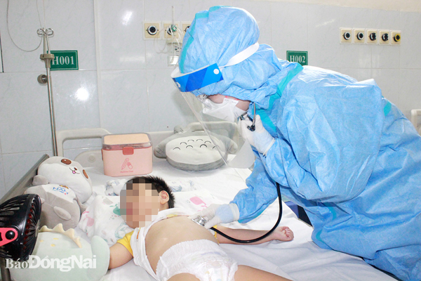 Mặc dù đa số bệnh nhi mắc bệnh không nặng nhưng nhiều gia đình lo lắng nên đưa con vào bệnh viện để được chăm sóc, theo dõi. Đến thời điểm hiện tại, Bệnh viện Nhi đồng Đồng Nai đang chăm sóc, điều trị cho gần 200 bệnh nhi mắc Covid-19, trong đó có 1 ca bệnh nặng.