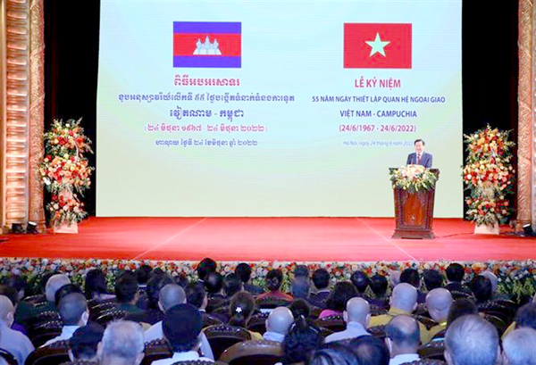 Nhìn lại chặng đường 55 năm qua, Phó thủ tướng Lê Minh Khái khẳng định, mặc dù trải qua biết bao khó khăn, thử thách cùng với những thăng trầm của lịch sử nhưng tình đoàn kết, hữu nghị truyền thống và quan hệ hợp tác toàn diện, tốt đẹp giữa Việt Nam - Campuchia đã và đang không ngừng được củng cố, phát triển, đóng góp thiết thực cho công cuộc xây dựng, phát triển phồn vinh của hai nước. Chủ trương nhất quán của Việt Nam là ủng hộ một nước Campuchia độc lập, hòa bình, trung lập và phát triển. Đảng, Nhà nước và nhân dân Việt Nam hết sức coi trọng và dành ưu tiên cao cho mối quan hệ láng giềng tốt đẹp, hữu nghị truyền thống, hợp tác toàn diện, bền vững lâu dài với Campuchia. Đây cũng là mong muốn và quyết tâm của lãnh đạo cấp cao hai nước như lời Tổng bí thư Nguyễn Phú Trọng phát biểu nhân chuyến thăm cấp nhà nước tới Campuchia năm 2017: "Cho dù tình hình thế giới và khu vực có những đổi thay, song trước sau như một, Việt Nam luôn coi trọng và sẽ làm hết sức mình cùng với Campuchia giữ gìn, vun đắp mối quan hệ Việt Nam - Campuchia mãi mãi xanh tươi, đời đời bền vững".